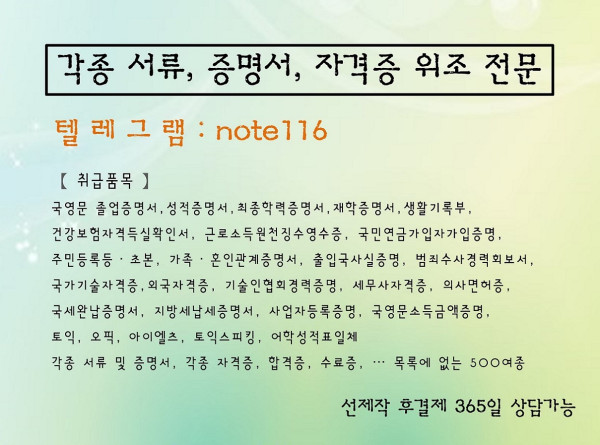 ボ⑵건강보험자격득실확인서위조【텔레note116】근로소득원천징수영수증제작Ц국민연금가입자가입증명위조【텔레:note116】국영문소득…